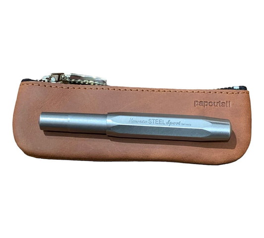 Lederetui für Kaweco SPORT Mokka mit Reißverschluss von Papoutsi