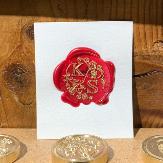 Siegelstempel mit 2 Initialen floral rund 25mm
